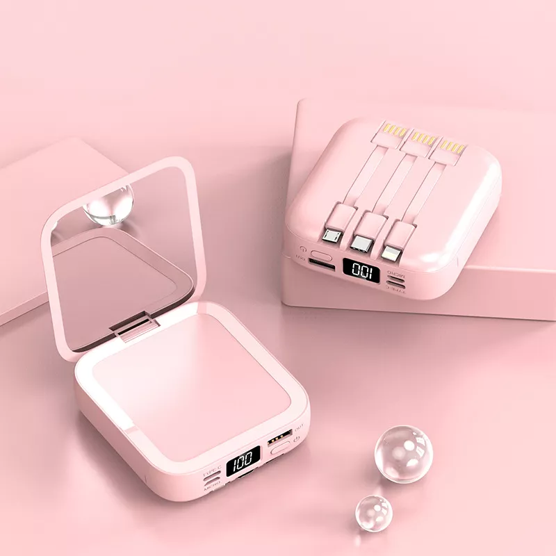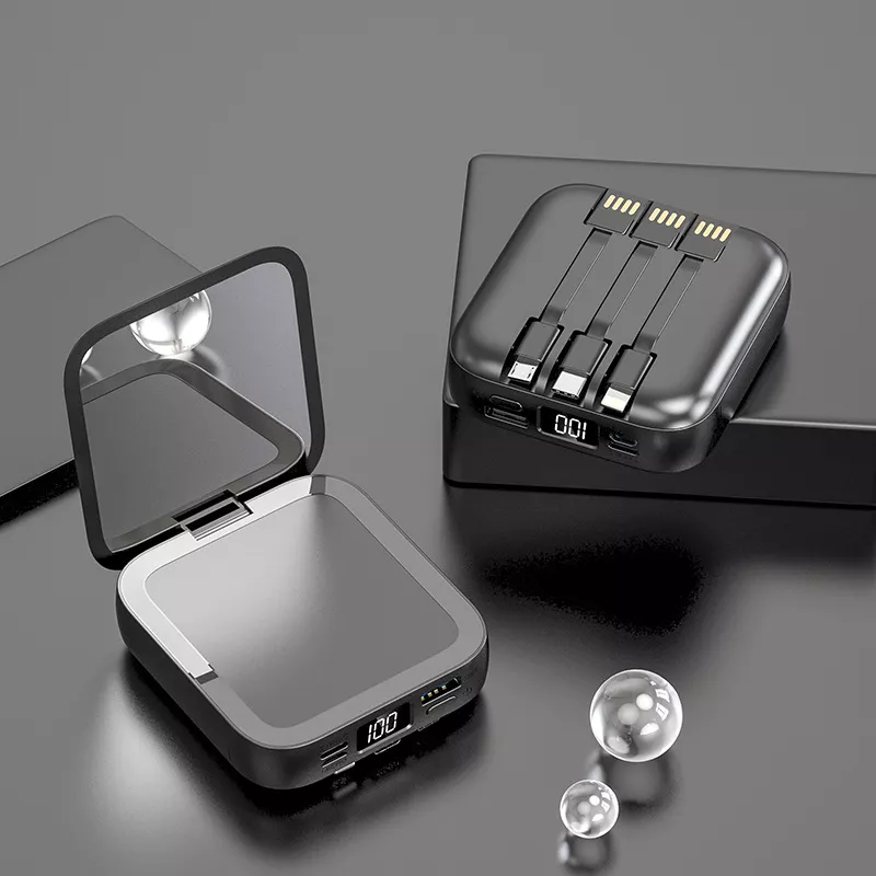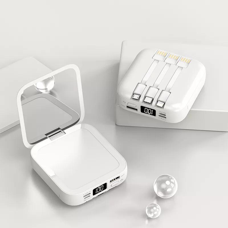 20000mAh Mini Power Bank with Built-in Cable and Makeup Mirror