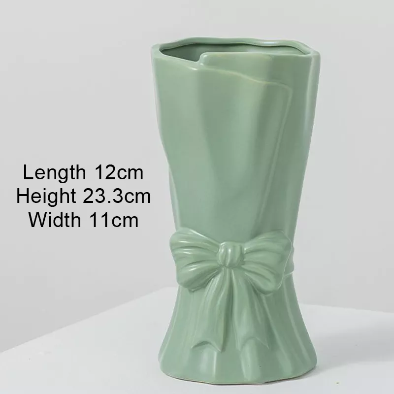 Handcrafted from high-quality ceramic, this vase boasts a smooth, refined finish that reflects expert craftsmanship. The minimalist Nordic design blends seamlessly with contemporary, modern, and even classic interiors, making it a versatile choice for any home. Its durable ceramic construction ensures longevity, while the sleek bow shape adds a touch of uniqueness that sets it apart from ordinary vases.